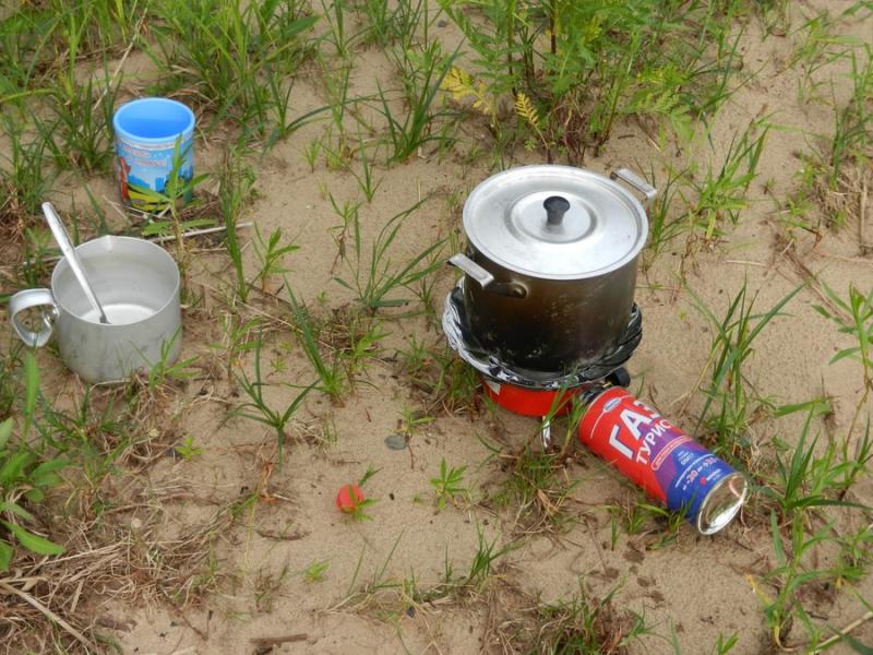 Прошлогодний поход на Оку (Муром-Касимов-Муром 2011) кое-чему научил. Самое главное - приготовление пищи на костре в одиночном походе занимает очень много времени. Это постоянный поиск дров, поиск места без ветра, да и чистка посуды от копоти после костра тоже беда. И теперь у меня портативная газовая плитка с баллончиками, и этих проблем нет. Машина тоже под присмотром, а не брошена под забором.