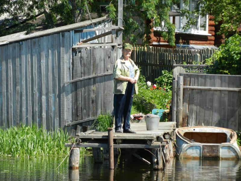 И вот 10 июня, в 13 часов накачаваю и спускаю лодку в Каменке в местную речку Сунжу, что впадает в Волгу в 3-х километрах. Провожает тётушка Лена, она с недоверием щупает мою надувную лодку и спрашивает: "на этом ты решил на Волгу?"