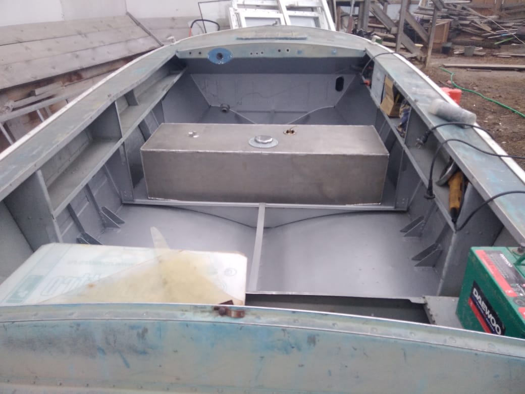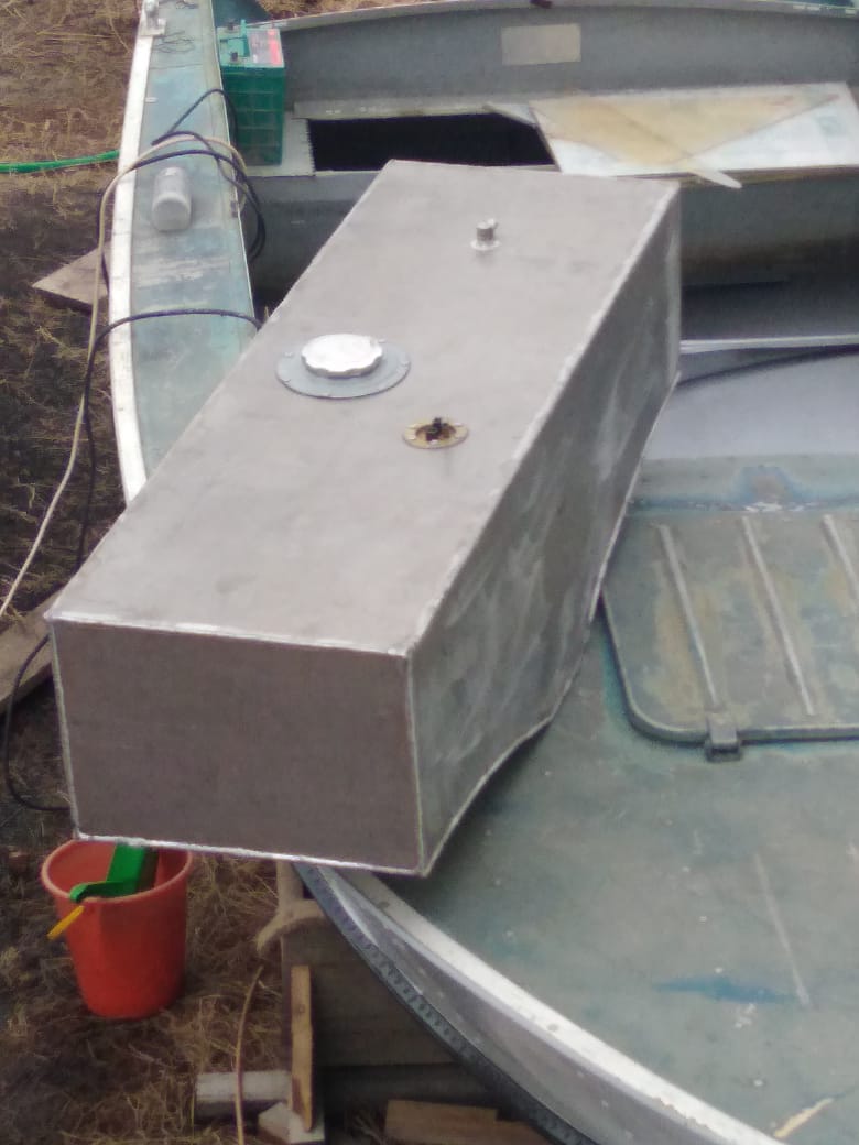 Сегодня забрал заказанный ранее топливный бак. Примерил на место ... Практически лег как влитой. Обошелся он в 7тысяч + 1550 датчик уровня с прибором. Теперь надо его закрепить, вокруг него сварганить короб (рундук) и сверху установить сидушки. Доступ к баку планирую из кокпита, между сидениями будет лючок, через который и будет доступ к горловине. Понимаю, что есть множество минусов заправки из лодки, но пока решил сделать именно так. Не понравится - в будущем переделаю.