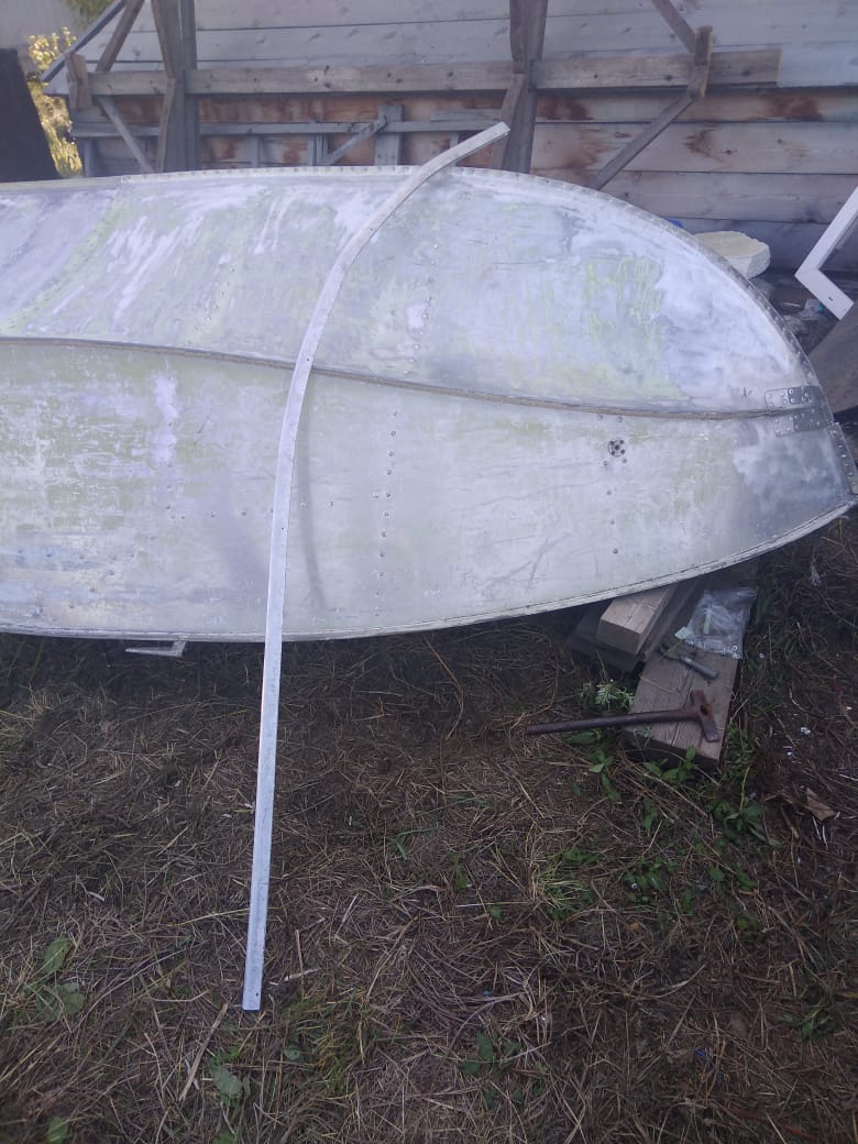 Затем я снял сгнившие скуловые накладки, форштевень был снят еще в прошлом году. Я попросту срезал болгаркой шляпки клепок с обеих сторон, пропилил накладку по сгибу, и отодрал с помощью «такой-то матери» их нахрен.