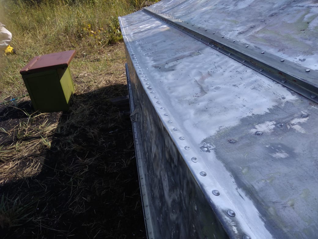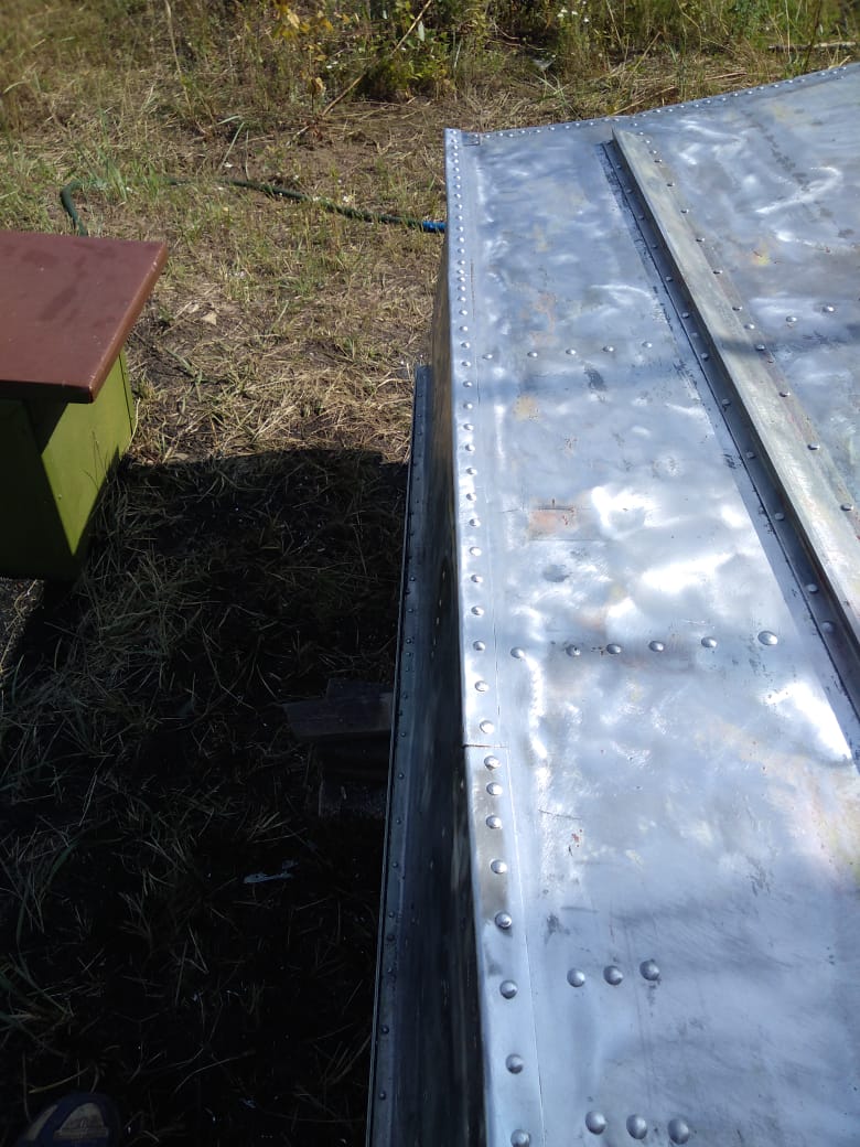 Далее я зачистил всё латунной щеткой, убрав следы явной коррозии, краски, торчащей ленты и т.п. Оставшиеся грибки от клепок я развальцевал (сплющил). Тем самым скрепил все детали воедино. А то смотрел на некоторых видео клепки высверливали, и листы бортов отходили от листов днища, образуя щель.