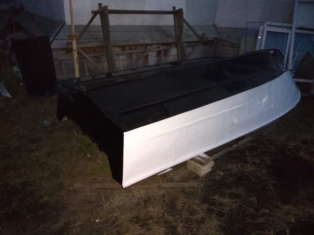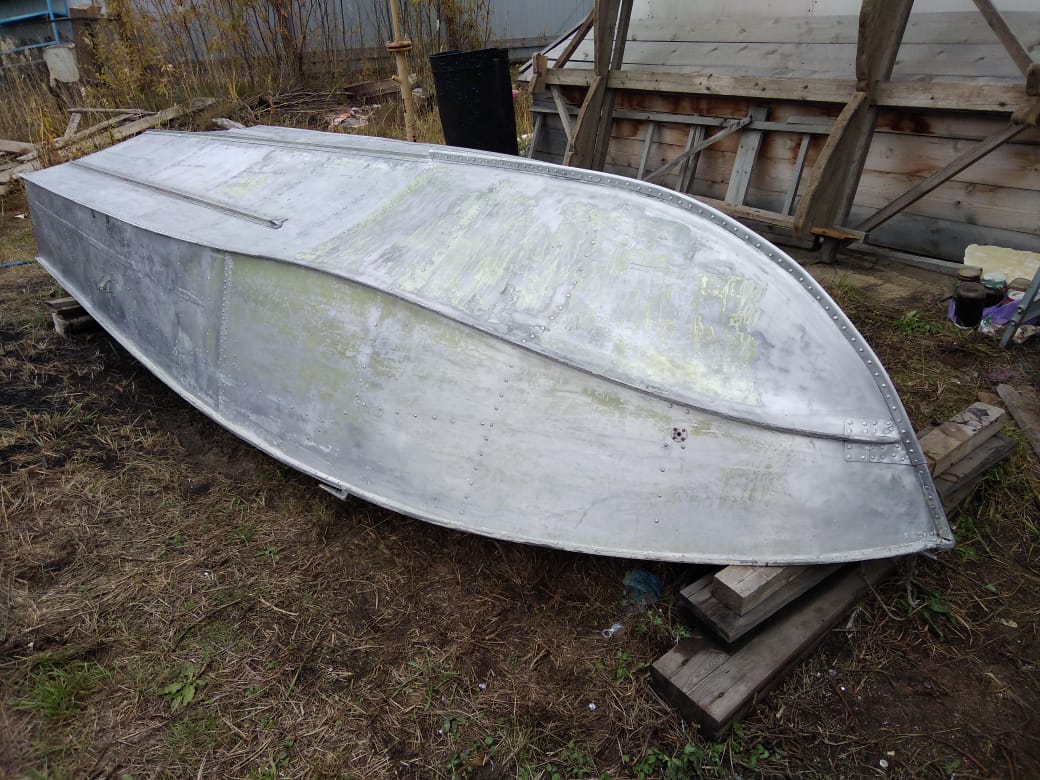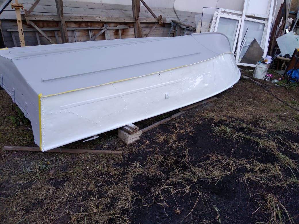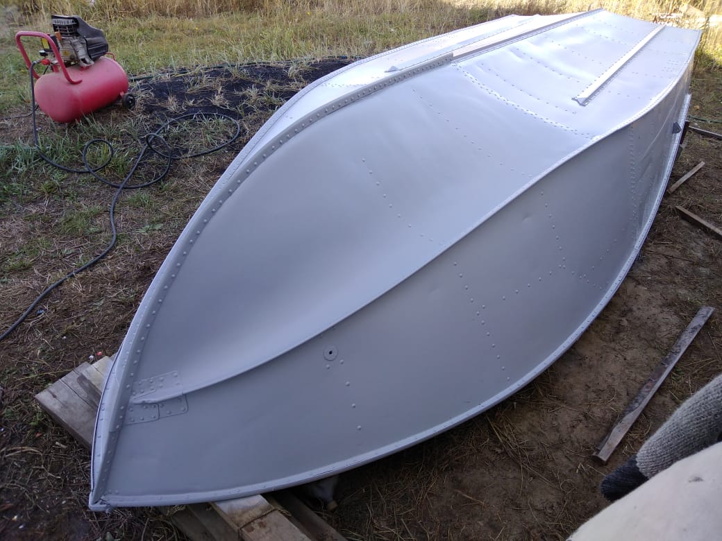 Перед покраской, я промыл лодку кёрхером, высушил, обработал скоч-брайтом и обезжирил растворителем всю поверхность.
