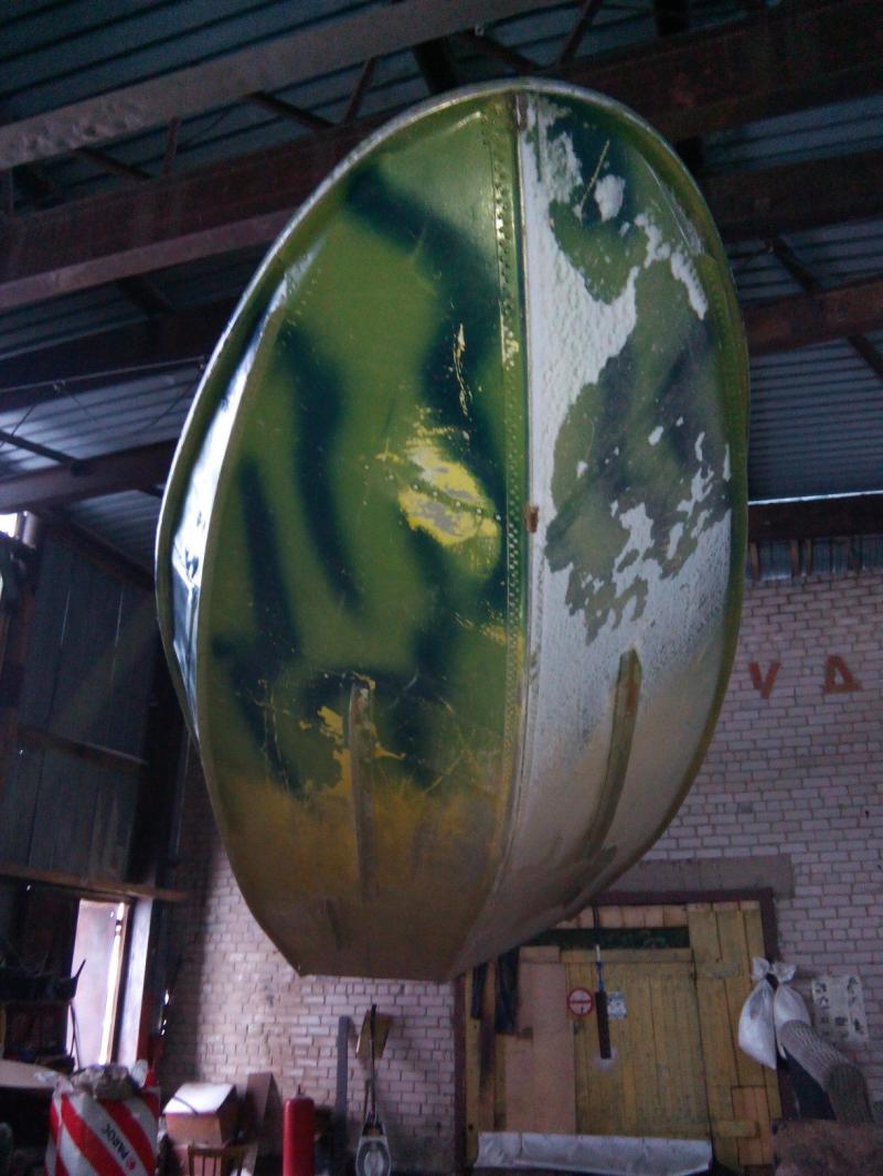 Лодка снята с учёта. Состояние днища хорошее, ровное, на днище установлены гидрошайбы. На транце и на борту есть заплата, небольшая пробоина в районе миделя выше ватерлинии (около 20-30 мм)