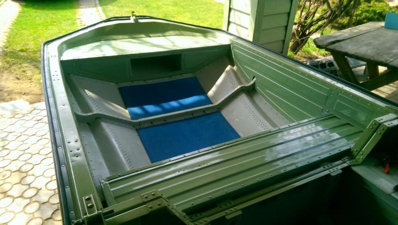 Экспиременты закончились. Пошел процесс. Работа конечно трудоемкая. Из-за ребер жесткости на бортах легче покрасить лодку целиком, чем творить такое..... Извиняюсь за качество фото. В реальности смотрится веселее.Kep сказал(а):Да, лодка интересная. Жду продолжения.