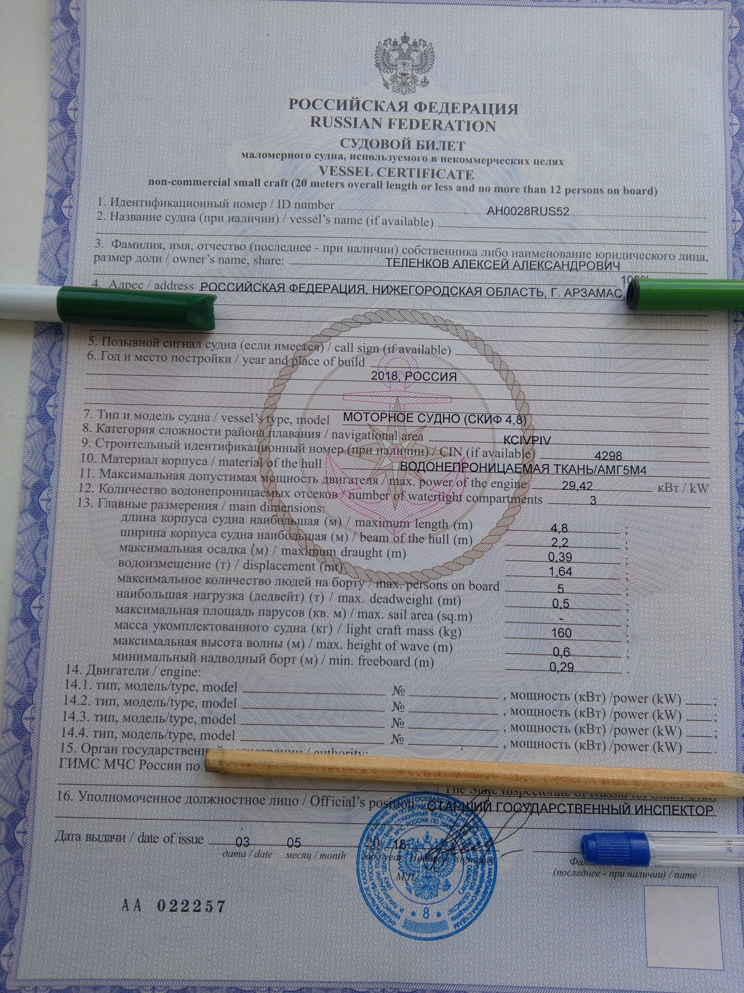 На 50ти я сам не настаивал, хотя мог, реально для этой лодки будет перебор. В ГИМС сегодня пойду.