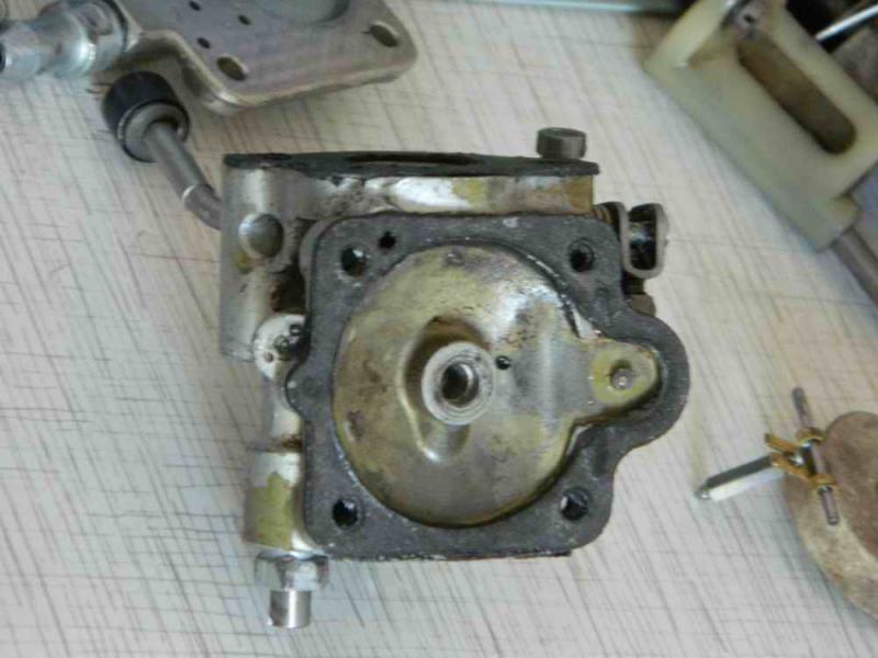 Перебирал карбюратор два раза, никакого видимого дефекта не нашел. Правда, отверстие для подвода вакуума к мембране бензонасоса (на фото слева вверху) везде находится на кромке прокладок и, соответственно, есть сомнения в герметичности.