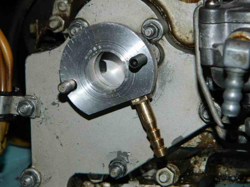 Правда, Фишбейн ничего не пишет о том, откуда взять вакуум для привода мембраны бензонасоса. Обычно для этого сверлят стенку кривошипной камеры и вворачивают в отверстие штуцер. Для этого надо располовинивать двигатель, так как сверлить на собранном категорически нельзя из-за попадания в него стружки. Разбирать хорошо работающий двигатель с нормальной компрессией тоже нежелательно, особенно такой как "Прибой" - на подшипниках скольжения с бронзовыми втулками. На моем экземпляре даже сохранились заводские пломбы на гайках. Разберешь - прощай приработка. Решил попробовать сделать под карбюратор специальную проставку со штуцером. Штуцер с резьбой М8 у меня был от прошлых поделок. Прокладку вырезал из паронита 0,5 мм. Чертеж и внешний вид проставки прилагаются.