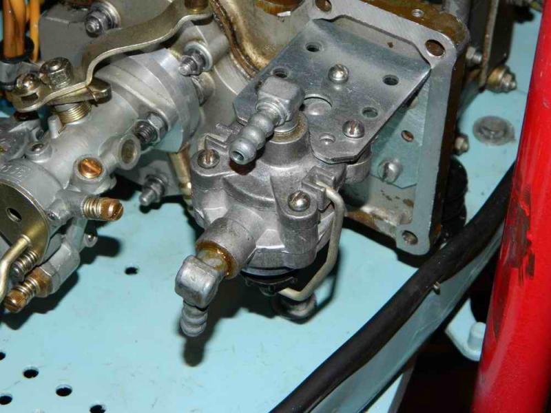 Бензонасос поместил на угловом кронштейне вместо отсутствующего у меня стартера.