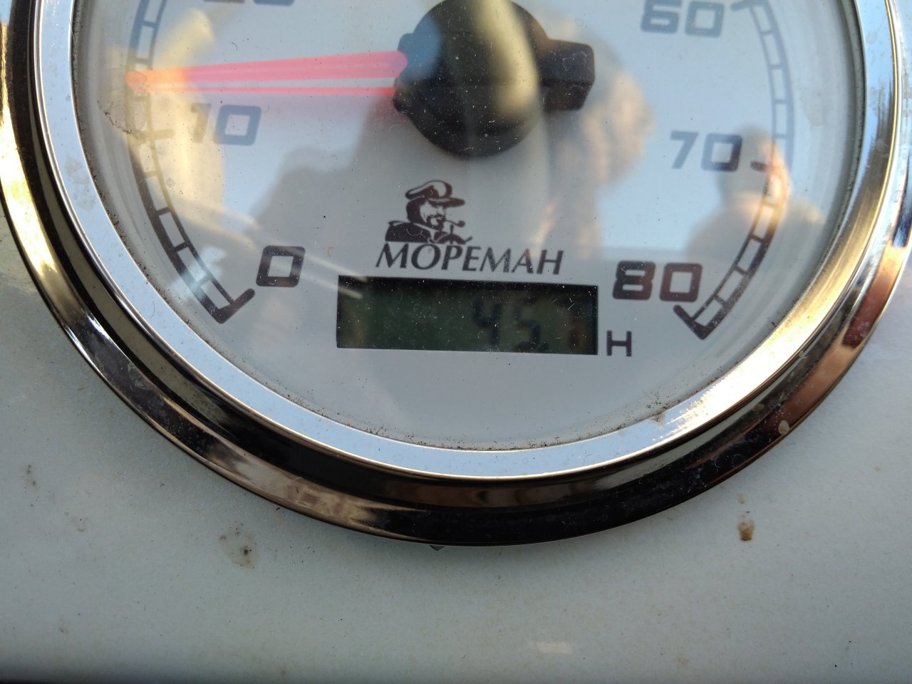 По приезду на базу щелкнул одометр и счетчик моточасов на этой лодке под тремя моторами.
