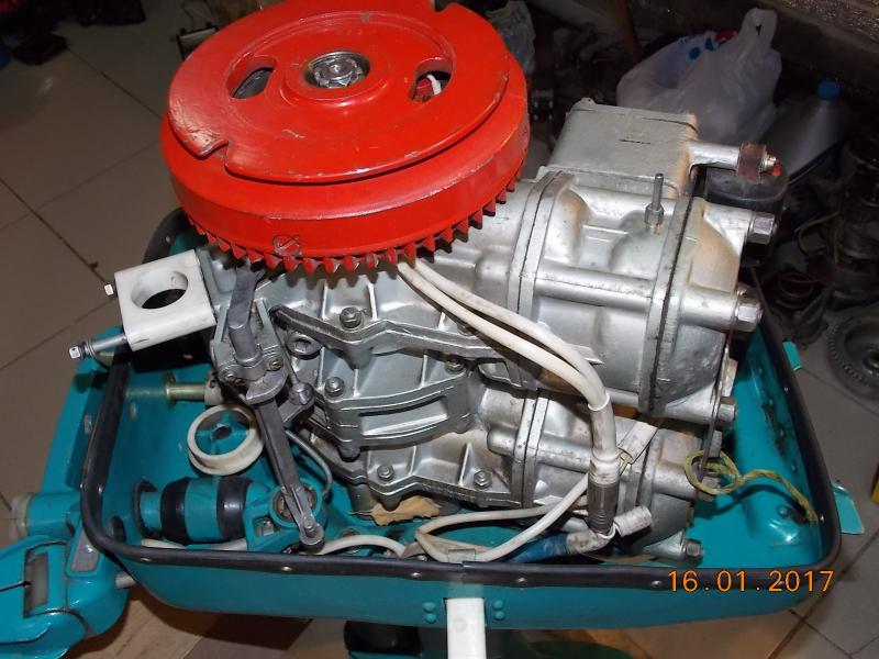 Это точно не Старт. Старт - совсем другой. Точно не П-40. И это точно что-то очень древнее. Хотя бы потому, что поршневой впуск - это очень и очень старые моторы. Самые старые советские моторы, которые мне встречались, были уже или на клапанах, или на золотниках. А этот - с поршневым впуском. Это пятидесятые - начало шестидесятых. Вполне возможно, что это и не приветовское семейство, а ногу Привета женили на какой-то древней иномарке. По сути - головки похожи на Привет. И только. Разъём картера - по оси коленвала. Таких Приветов не было никогда. И дырка в поддоне для входа воздуха в нижний карбюратор - не серийное же дело. Может какой-то Пента-Архимед на приветовской ноге? Может приветовцы форму глушителя и головок с этого мотора драли?