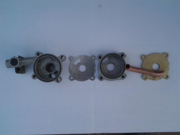 Может кому пригодится. Столкнулся с ситуацией, намучился с помпой Москвы 10, ну никак воду не хочет поднимать. Думал думал-осенило. Нашел ещё один корпус помпы, отпилил лишнее, заделал вход и выход в этом корпусе холодной сваркой, в пластине просверлил 3 отверстия, 1 на выходе и 2 на входе. Получилась помпа с двумя крыльчатками. Конструкция очень даже хорошо заработала. Крыльчатки от Ветерка, старайтесь мягенькие ставить, шпонки тоже от Ветерка полукруглые я их на супер клей приклеиваю, они конечно отвалются потом, но пока работаешь -удобно.