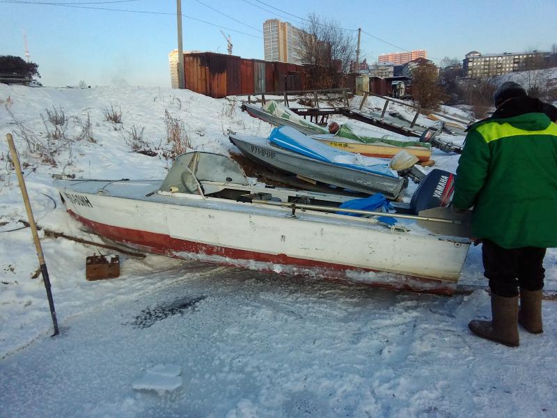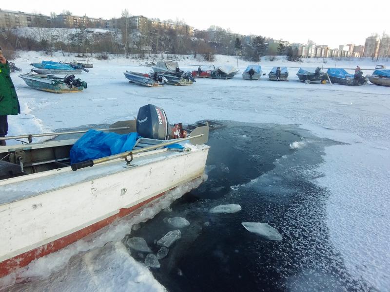 Знакомый поленился вчера вытащить на лед лодку .