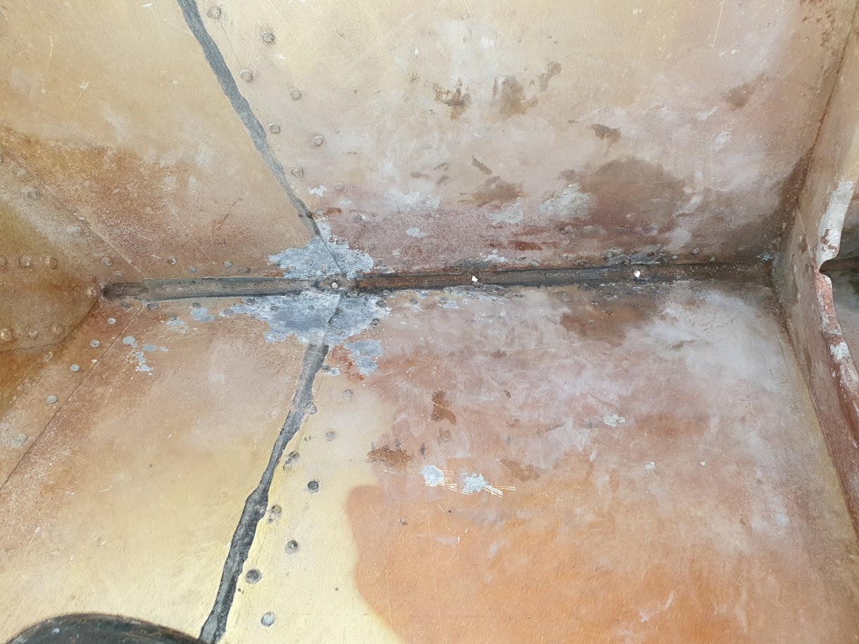 Сейчас я вычищаю эту гадость. Но вот крутится мысль вернуть обратно стальную полосу для усиления форштевня, но как сделать чтоб при этом коррозия не процветала...