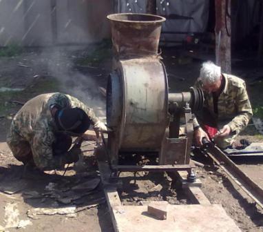 Для такой техники или продувка в "атмосферу" через прообраз "циклона" или водяной фильтр.