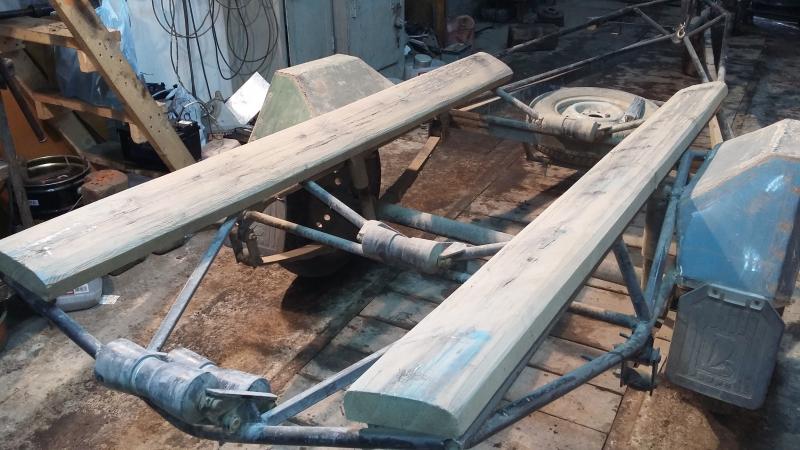 Полторашки водой наполнил и вместо катков между лодкой и ложементами их использовал . И это ,по сути , с самосвалом кое как сработало . Но полтарах хватало только на один подъём ... они взрывались на фиг .
