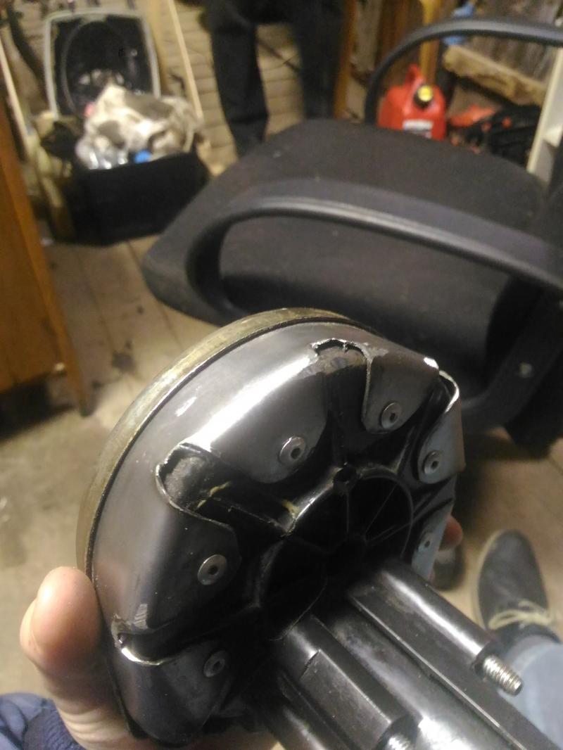 1. Обнаружил, что корпус рулевого редуктора разломан. Ввиду этого трос не сматывается в кассету. Редуктор идентифицировал, как Т67 Morse, Made in Sweden. Попробуем отремонтировать, сделав новый кожух из подручных средств...