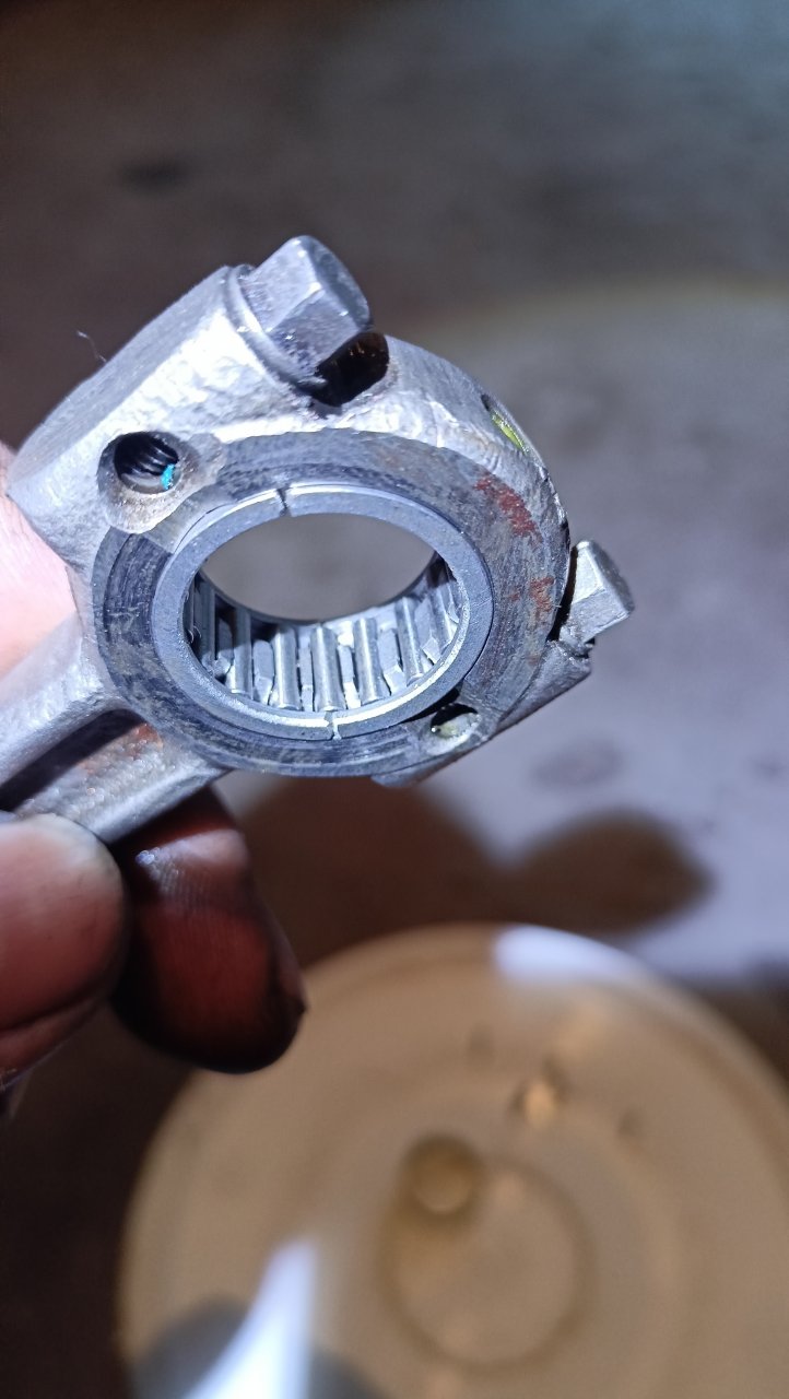 Зазор был, 0.8 сверло не лезет. Новодел или нет, не знаю. Если присмотреться, то видно что иглы стоят на косую и буквально приплавлены к шатуну. От момента непонятного притухания оборотов, до клина, прошло не более пары минут.