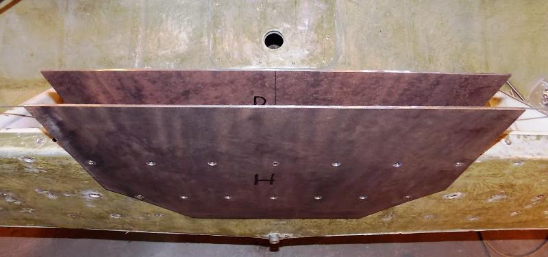 Нарезаем заготовки- размеры сняты с лодки и пересчитаны под мотор. Отверстия просверлены в точности по штатным отверстиям заводских винтов на транце Прогресса. Старые винты заменены винтами из нержавеющей стали.