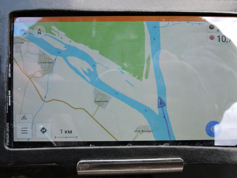Дошел о устья Вишеры, решил тормознуть и разбить лагерь, спешить не стоит. Только связи никакой, досада. На карте глянул, по Вишере жилья нет, а по Каме вверх поселок Керченски, в 5-6 км, ну я туда. И вышка сотовая там, и все дела, а связи нет. Оператор наверно не мой. Вернулся, ниже устья Вишеры километров на 10, здесь паромная переправа, связь есть, устроился на ночь.