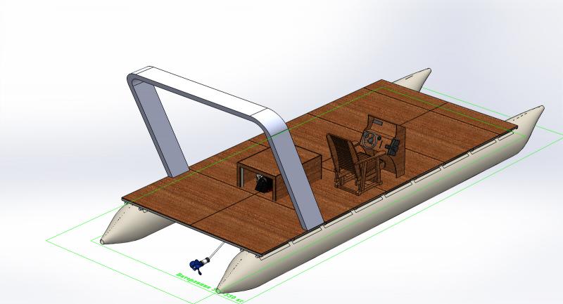 Почему катамаран а не монокорпус? По соображениям устойчивости, максимальной полезной площади палубы. Также, чтобы была возможность его разобрать на зимнее хранение.
