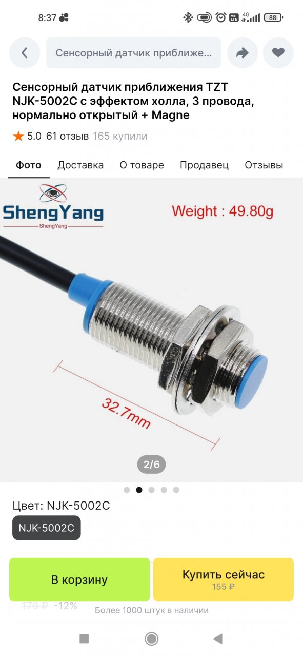 Датчик может быть и холла и индуктивности, мне попался индуктивности,