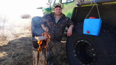 Вместо костра для приготовления, можно прям в луже....
