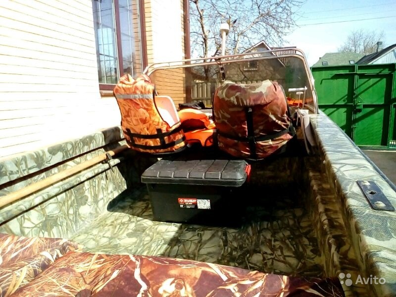 Лодка полностью готова к покатушкам и рыбалке. Не боится не дождя ни солнца. Не гниет и не требует ухода. Эхолот, трюмная помпа, USB ресивер с колонками, фароискатель LED с направленной линзой, стационарный бак на 30 литров с внешней заливной горловиной. Все тумблера и кнопки с оборонки. машинка газ-реверс ручной работы. Троса дистанции завода Ростсельмаш. Крепеж -нержавейка. Все контакты пропаяны. Отлично слушается руля и управляется. Скорость в 3 тушки 42-43 км. Прицеп с документами. Продаю ниже себестоимости ее постройки.