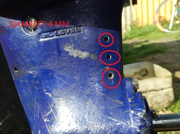 Для увеличения мощности двигателя просверлил по два отверстия с двух сторон диаметром 4 мм. чтобы выхлопные газы выходили с меньшим сопротивлением