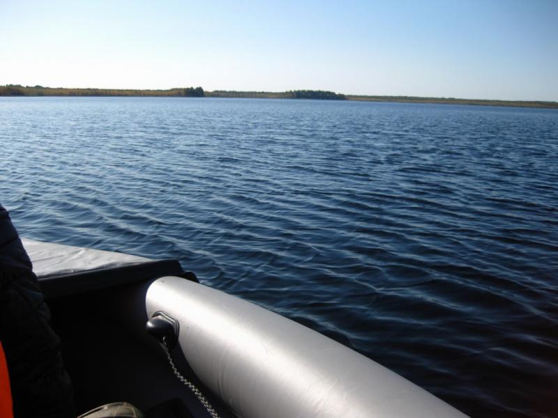 Сегодня на небе ни тучки, вода аж синяя, жара 18гр. Пришлось лодку пару раз подсдувать