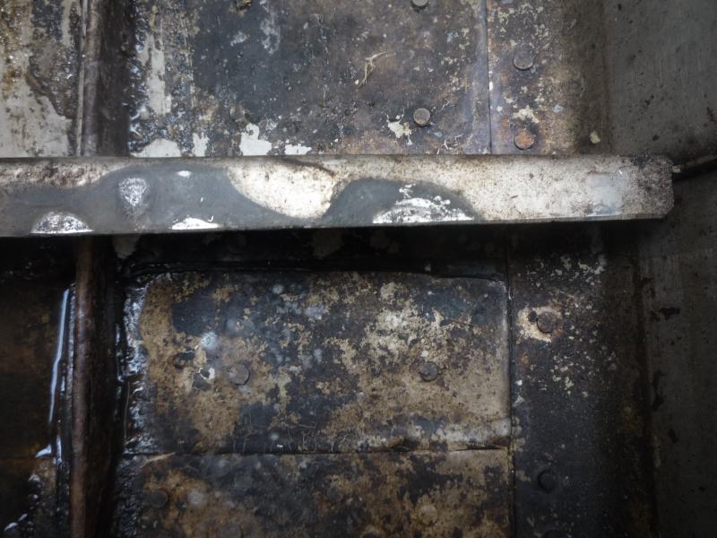 Потекли некоторые заклепки в днище Триала . Пришлось вырезать технологический люк .