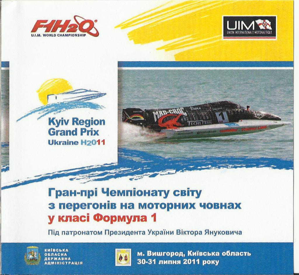 Сегодня был подписан договор о проведении 30-31 июля 2011 года в городе Вышгороде Киевской области Всемирного чемпионата водно-моторной "Формулы 1". Договор подписали глава Киевской областной государственной администрации Анатолий Присяжнюк и промоутер"Формулы 1" на воде, вице-президент компании Idea Marketing SA Лавиния Каваллеро, передает УНИАН.