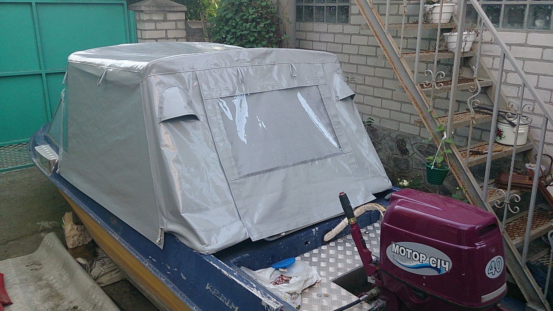 Вот что из этого получилось... Полностью пвх, достаточно эластичный, окна сбоку и сзади зашториваются заслонками, в клапане и боках застежка-молния. Стоит такое удовольствие у нас две600 гривнабаксов