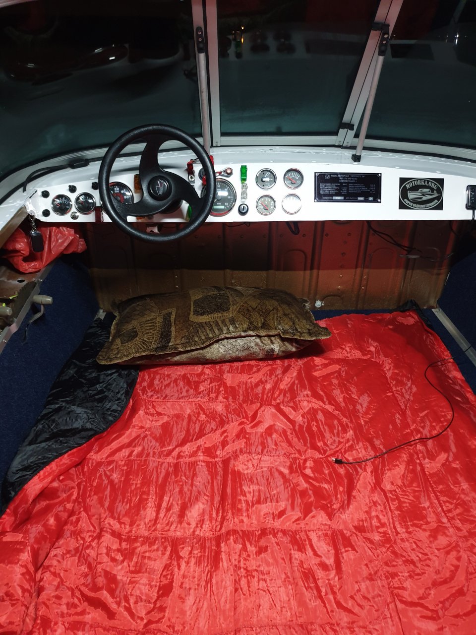 Выехол с начевкой на рыб, на улице холодина, бррр, зато в лодочке тепло