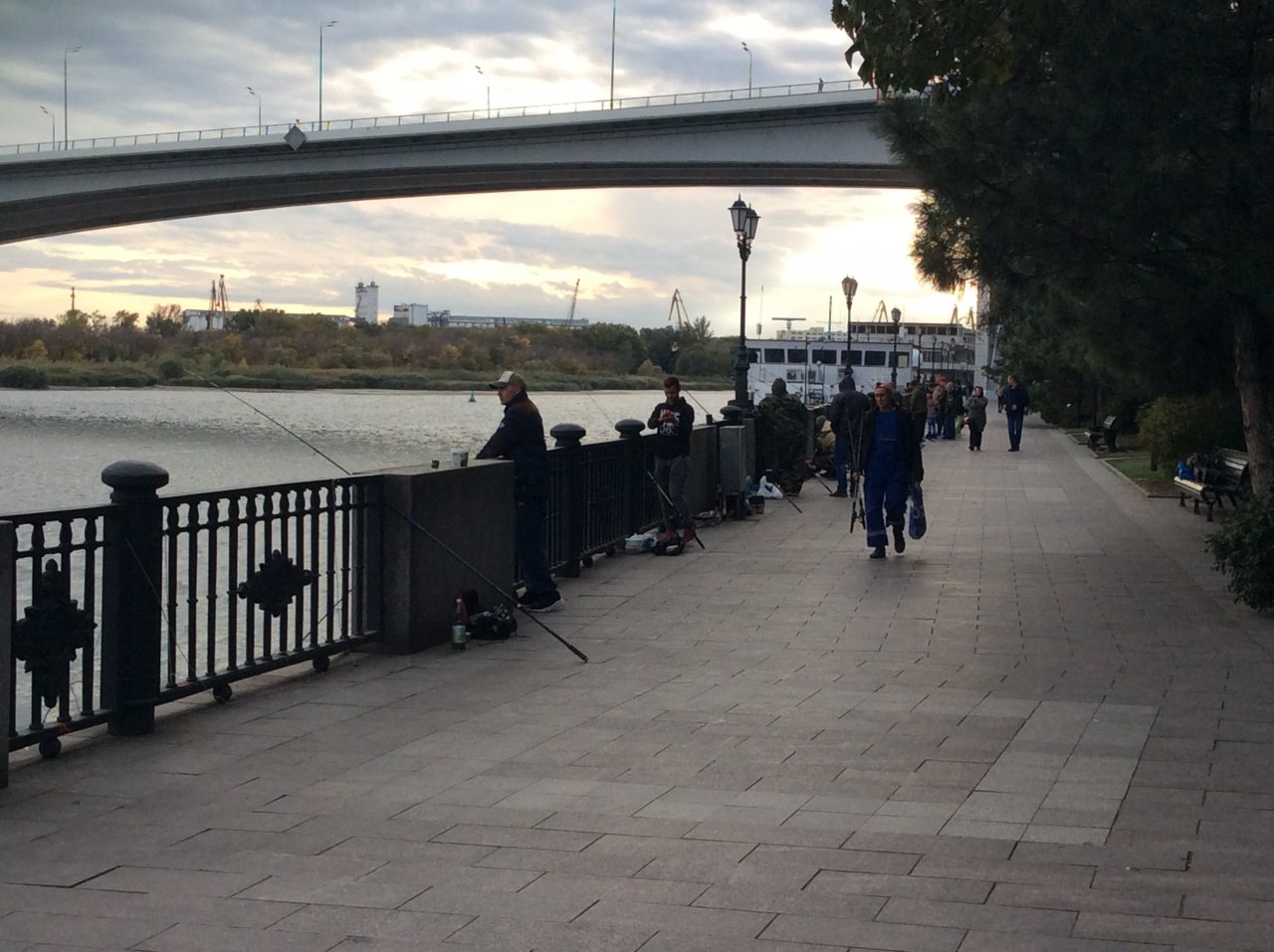 Ну.а где лещи то?В центре Ростова-на-Дону на набережной, в перемешку с прогуливающимся народом мужики ловят достойных лещей и рыбцов.. и местами не мало рыбачков.. даже приспособы все сделали что бы удилища об железные перила не покоцать..