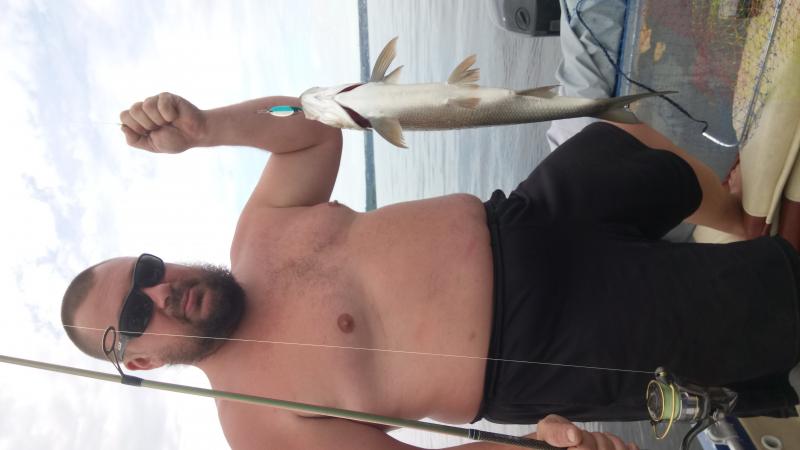 День рыбака естественно прошёл на рыбалке.Рыбалка прошла не плохо ,а вот окуня жадность подвела; Он позарился на рыбку которая"честно " попалась на крючок !