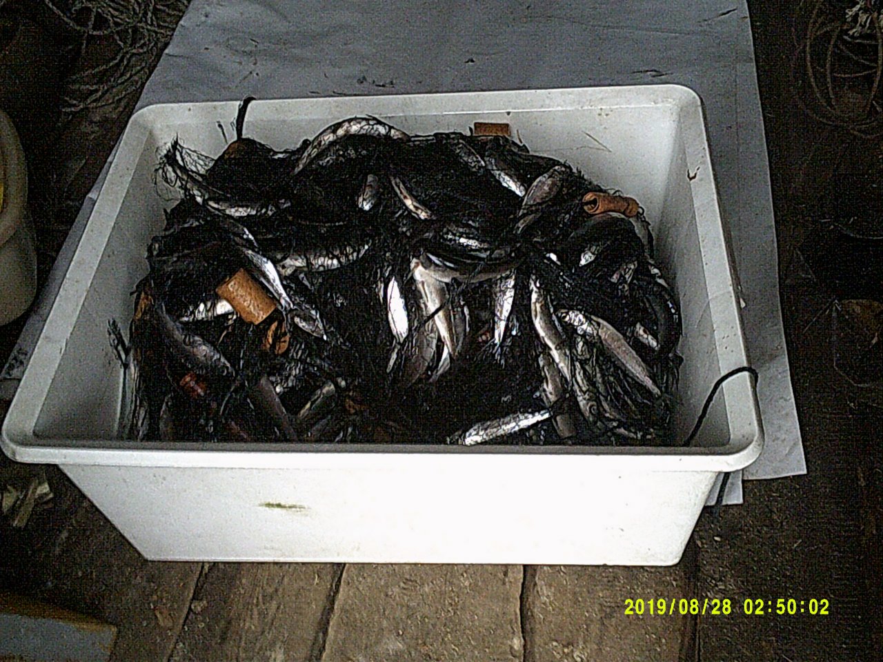 Этим сетям лет сорок,на них ловил еще его отец.Грузила -металлические кольца,поплавки-пенопласт.