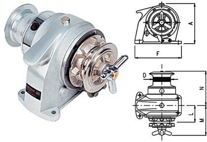 Якорная лебедка с ручным приводом. Способна работать с цепью и тросом. Работа с комбинированным якорным концом (цепь + трос) невозможна. Имеет функцию аварийного (свободного) спуска цепи. Корпус из алюминиевого сплава.