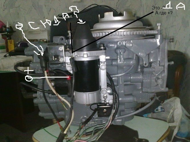 Покажите, плизззз, куда мне подключить провода от аккумулятора на моторе чтобы стартер заработал????