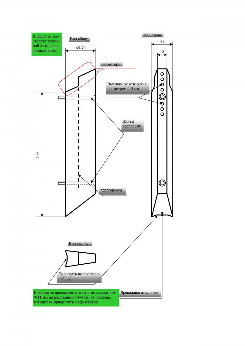 К тому же на фото нет спускного отверстия из "кармана". И охлаждения дополнительного глушителя (автор пишет, что вода туда не попадает), а выхлопные газы имеют очень высокую температуру. Даже их небольшое кол-во хорошо нагреют верхнюю часть дейдвуда.