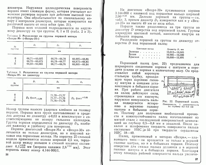 Поршневой палец (На русских 2-х тактниках)обычно плавающего типа,проворачивается и в поршне и в шатуне.В жигулях да только в поршне,на волге не знаю не пользовал.