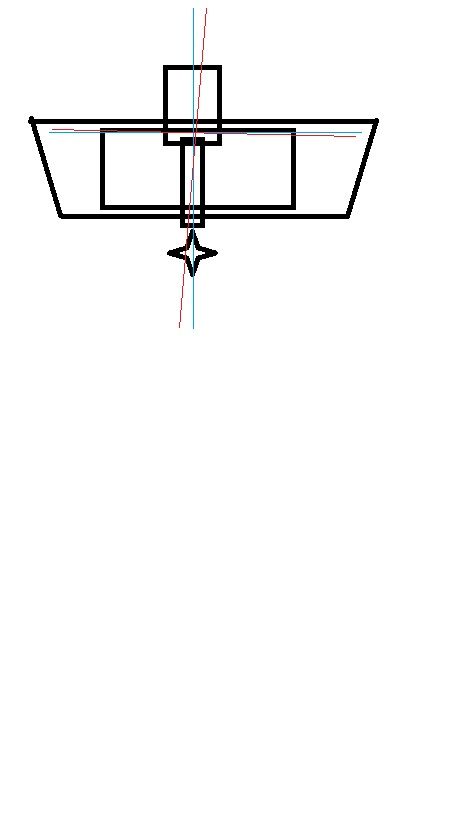 Есть ощущение,что мой мотор стоит вот так! 1-Синяя линия-правильная установка. 2-Красная линия,возможно так стоит мотор у меня!