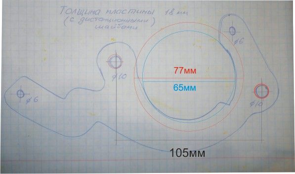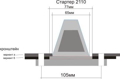 Karakul прислал еще фото кронштейна.Попробовал перенести в Corel обычно клетка в тетради 5мм.Есть вопрос по установки стартера к кронштейну вариант а и вариант б.Красным выделен стартер с креп.отверстиями, синим трассировка по фото кронштейна. На фото размеры ступеней колокола стартера ( выделены цветом).Стартер ставиться с низу кронштейна или с верха?Если снизу то делать кронштейн лучше из 3-5мм и с шайбами?Если из пластины 18мм, то не понятно как пройдет корпус стартера?