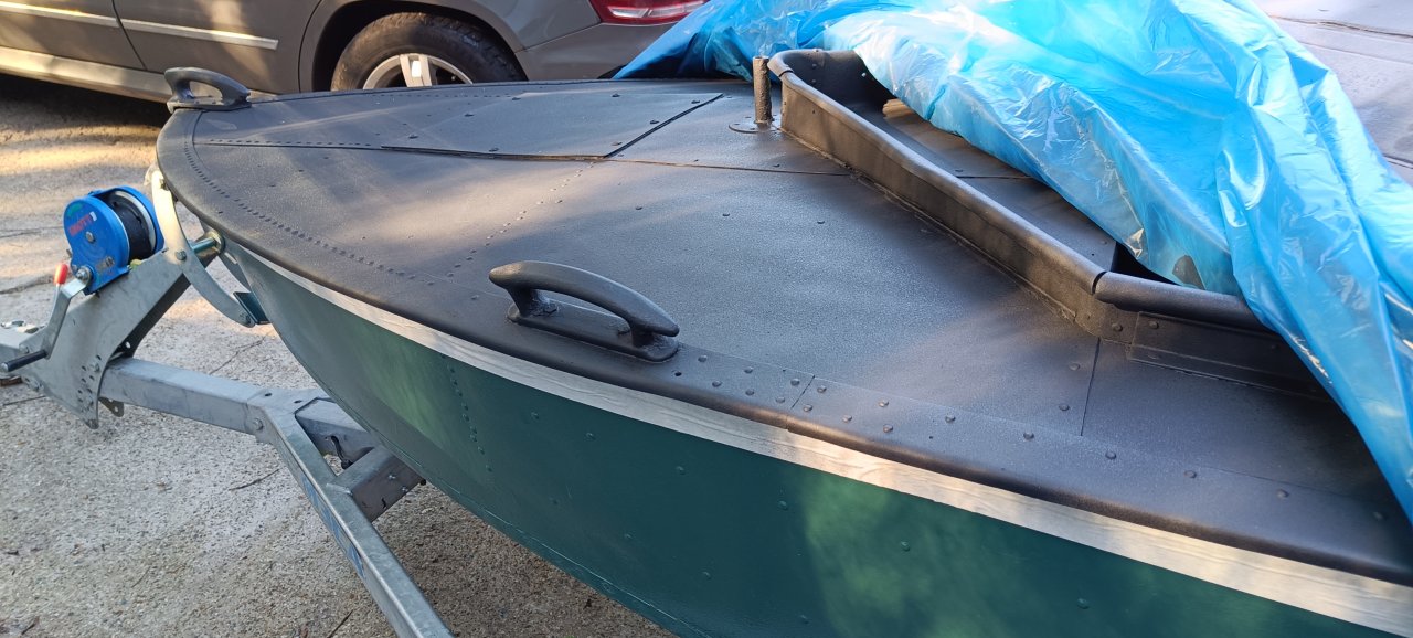 На покрытии за эти годы имелись сколы и отслоения. Это коснулось в основном палубы и совсем немного бортов. Собственно ни чего удивительного, 12 лет топтали палубу сапогами и разным скарбом.ХВ-16 краска обратимая, её не снимают с лодки если держится на ура, а красят поверх, обезжирив тем же растворителем что и краску разводят. (Р-5) В чем и прелесть этой краски, наносишь свежий слой на старый, он частично растворяет старый и прилипает намертво к нему.