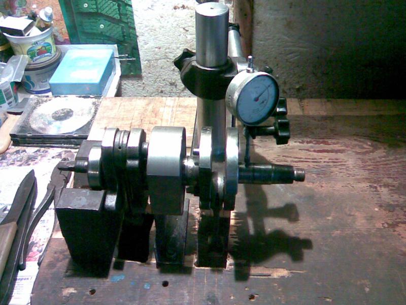 Много лет назад я разработал приспособление для разворота щек (правильно кривошипов, а в сборе с шатунами кривошипно-шатунный механизм) относительно друг друга для центровки коренных шеек коленвала. Получилось очень громоздкое, вес примерно 20 кг. Но разворачивать легко мощными винтами в любую сторону, даже при полной запрессовки кривошипного пальца. Не могу всем его не показать.