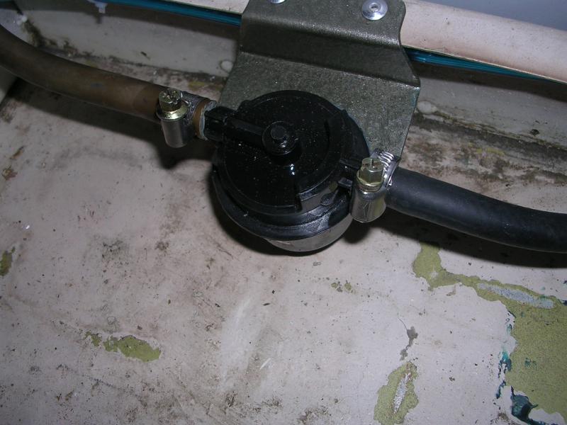 После изменения места жительства бензобака, ессно изменилась и топливная магистраль...Топливный фильтр, после недолгих раздумий решил устроиться рядом с аккумуляторным ящиком.., однако держатель фильтра всеж выежнулся явиться из некондиционного "датчика перелива" от известного только мне изделия :crazy: (С маленькими доработками).. Аккум остался на прошлогоднем месте, и никуда не собирается :D
