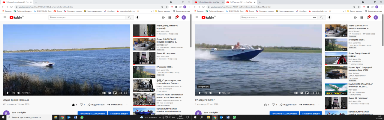 На того Днепра подобрали винт из моих запасов - 10 3/8 13. Скорость с ним практически одинакова 50 и 52 на 5500 на обеих комплектах. При этом поведение лодок разное.