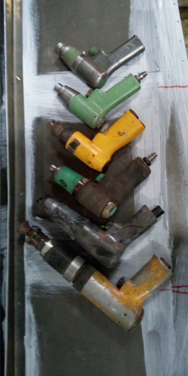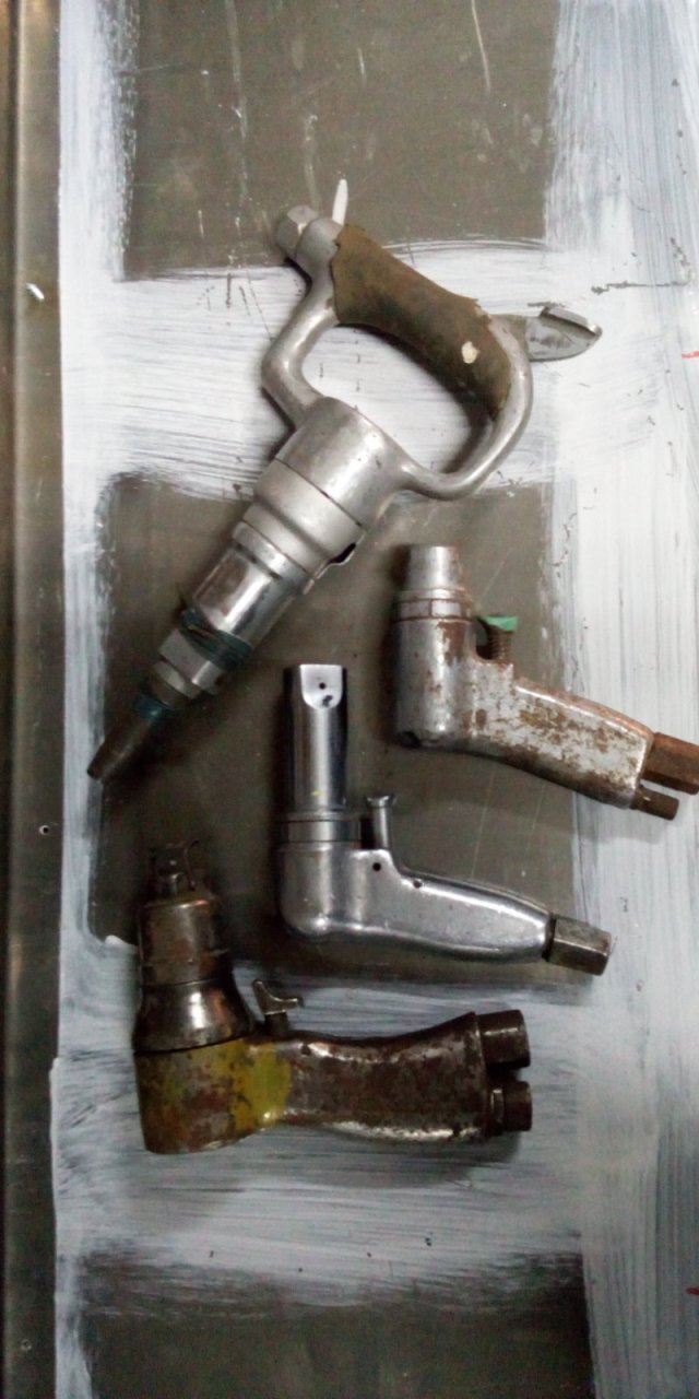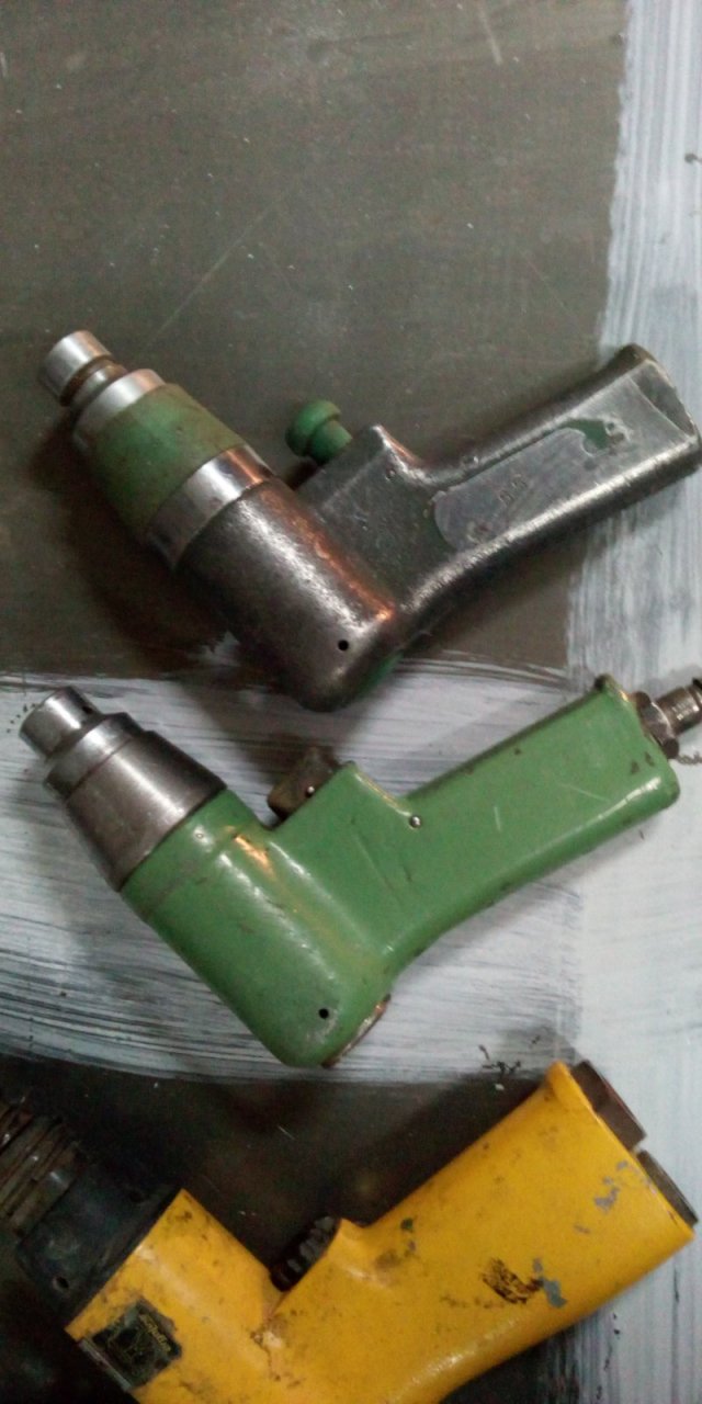 Вернусь к молоткам , вот небольшой их рядок . Сверху КМП 14М , и КМП14 , с переделанными ( стальными ) гайкой и задним упором ,и вес 1,2 кг и 1,5 кг. На нижней фотки древние молотки в серединке таким Ил 2 во время войны клепали ( такой же в музеи завода лежит ) про остальные нет информации , но ими уже не пользовались , хотя они в полной исправности. При чем у нижнего бешаная регулировка удара , Вы даже представить себе не можете , а в прочем попробуйте угадать сколько там фиксированных значений ? Уверен не угадаете . Потом напишу .Борь у тебя на фотки КМП14М или КМП14П отличаются от КМП14 кнопкой спуска ,,курком,, у тебя на Мке круглая , а так прямоугольная . Гайка у тебя полностью алюиминевая , а на 14 пластмасовая с вваренной алюминевой резьбовой вставкой , по моему они взаимозаменяемые . У обоих с торца пластмасовая ступенчатая шайба , в неё пружина коническая упирается . На Пешке или на Мке обжимка через резиноаую манжету вставляется , завтра свой сфокаю .
