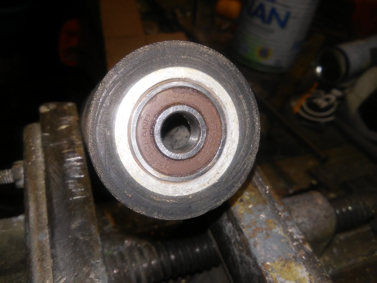 Самодельный ролик из пропиленовой трубы ( внутри вставлена алюминиевая трубка и подшипники)
