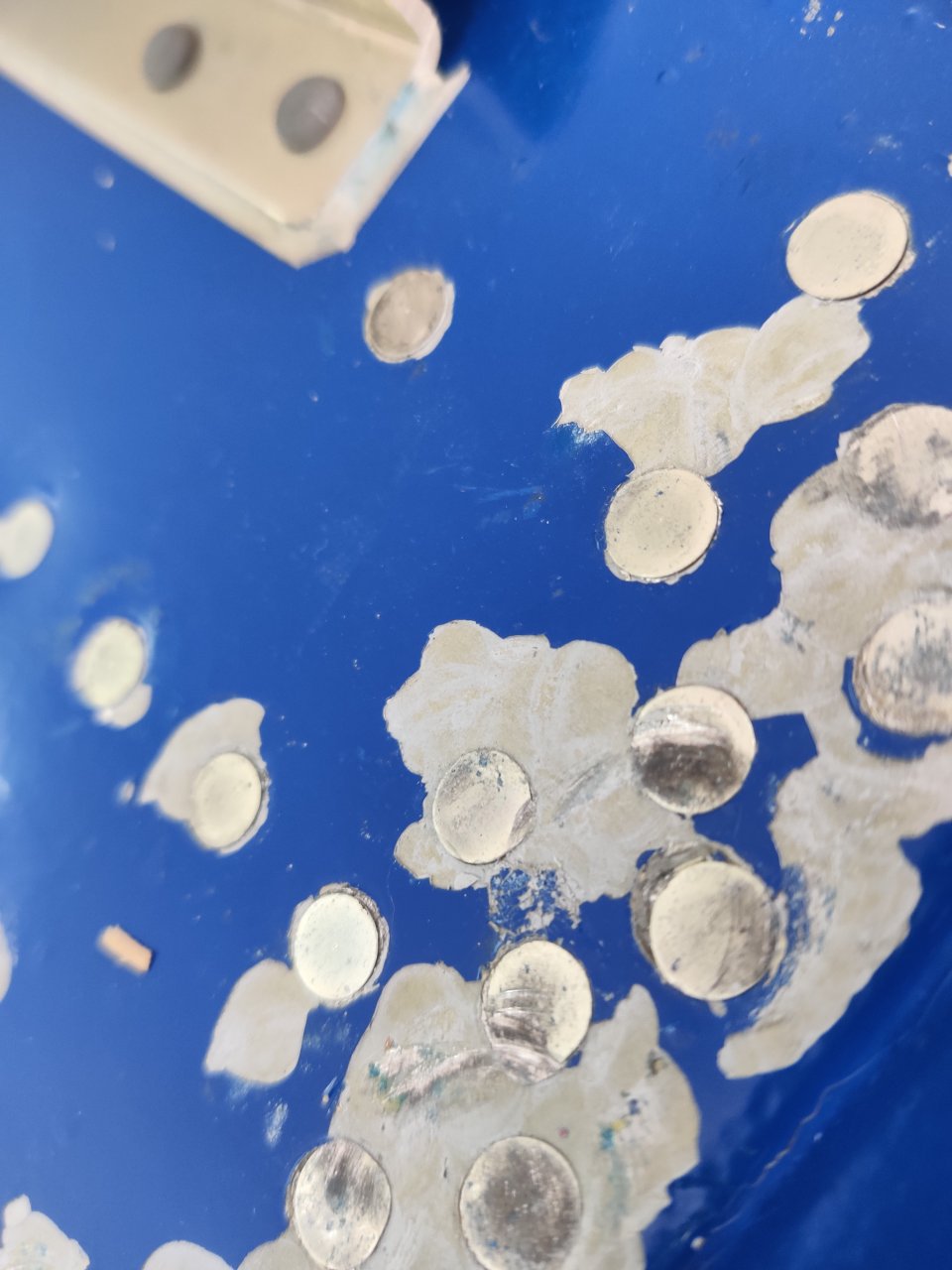 Есть такие заклёпки, как раз на толщину краски. А вот на реданах, где ее не было, все хорошо.