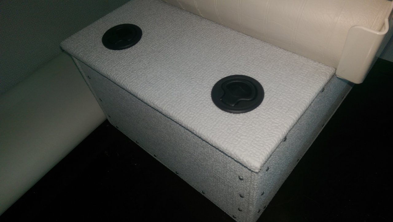 Володя Докер развеял эти сомнения. Мы с ним данный вопрос обсудили. В получившийся рундук прекрасно влезет запасной якорь-плуг, топор, пила и др. Есть у меня такой от ПВХ. Очень компактный, легкий , зацепистый и незацепляйка к томуже. Думаю Днепра он держать должен, Хотя маловат конечно.